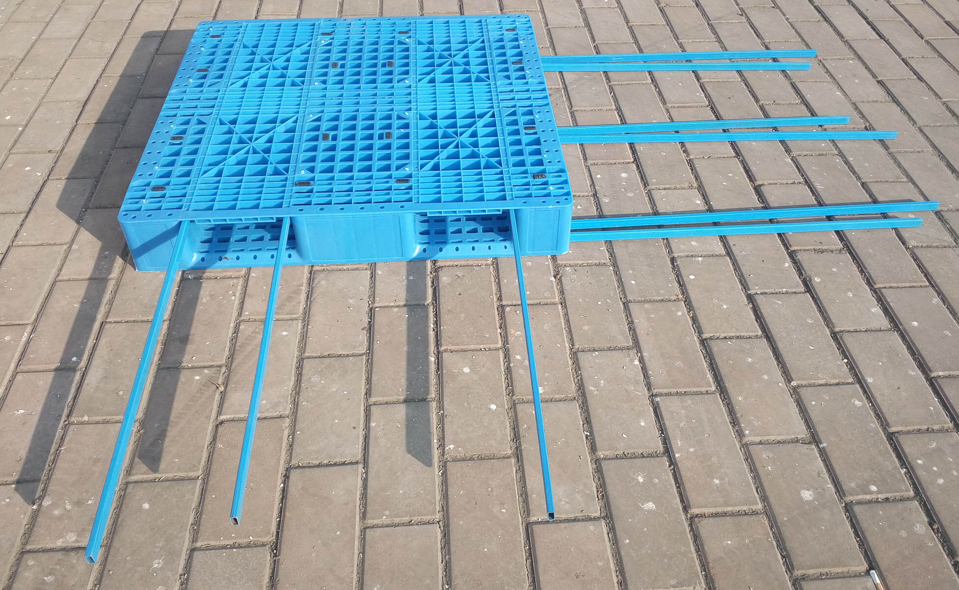 為了達到塑料托盤在貨架上的懸空載重1000kg--1800kg使用條件,必須在塑料托盤內部添加鋼管以提高托盤的承重支撐力,塑料托盤面部穿加4根鋼管,腿部是主要承重支撐部位山東諾亞方舟塑料制品有限公司生產的貨架塑料托盤 FCW1311(1300×1100×160mm) FCW1212 (1200×1200×160mm) FCW1210(1200×1000×160mm) FCW1111(1100×1100×160mm) 在三條腿部均可穿加兩根鋼管,整體塑料托盤的腿部可穿加六根鋼管,同時調整托盤鋼管的壁厚(1.5mm--2.0mm),完全可以滿足用戶的使用要求。